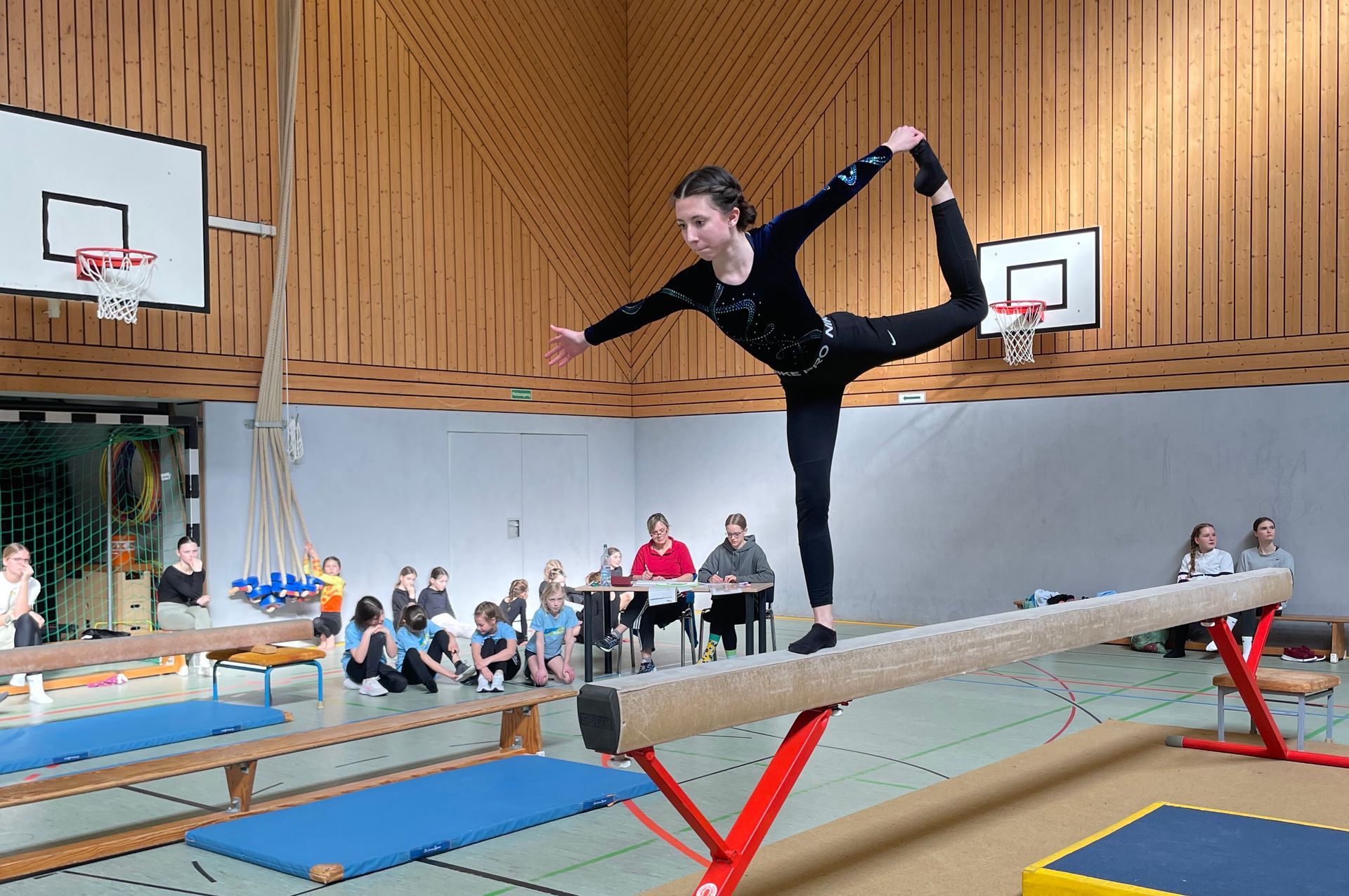 Am 16.11.2024 fand unsere Vereinsmeisterschaft in der Zachow-Turnhalle statt – der letzte Wettkampf dieses Jahres. 17 Turnerinnen trafen sich am Sonnabend, um unter Wettkampfbedingungen das im Training Geübte zu zeigen. Für einige Sportlerinnen war es ihr erster Turnwettkampf. Unter den Augen unserer „Großen“ – Silke, Fenja, Lucy und Samira – allesamt ausgebildete Kampfrichterinnen, zeigten die Mädchen, was sie in den letzten Monaten trainiert hatten. Geturnt wurde an den Geräten Boden, Schwebebalken und Reck. Dazu kam ein Wettkampf um den Titel „Stärkste Turnerin“, bei dem die Besten in den Disziplinen Handstand-Halten, Klappmesser, Liegestütze und Stangenklettern gesucht wurden. Die Titel sicherten sich in diesem Jahr Melina Vogler, Anni Valeske und Pia Dömlang. Die stärkste TSV-Turnerin wurde Nele Schröder. Pünktlich zum Abschluss des Kraftwettbewerbs kam die bestellte Pizza, mit der wir den Wettbewerb ausklingen ließen.