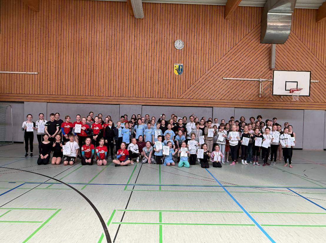 Am 16.11.2024 fand unsere Vereinsmeisterschaft in der Zachow-Turnhalle statt – der letzte Wettkampf dieses Jahres. 17 Turnerinnen trafen sich am Sonnabend, um unter Wettkampfbedingungen das im Training Geübte zu zeigen. Für einige Sportlerinnen war es ihr erster Turnwettkampf. Unter den Augen unserer „Großen“ – Silke, Fenja, Lucy und Samira – allesamt ausgebildete Kampfrichterinnen, zeigten die Mädchen, was sie in den letzten Monaten trainiert hatten. Geturnt wurde an den Geräten Boden, Schwebebalken und Reck. Dazu kam ein Wettkampf um den Titel „Stärkste Turnerin“, bei dem die Besten in den Disziplinen Handstand-Halten, Klappmesser, Liegestütze und Stangenklettern gesucht wurden. Die Titel sicherten sich in diesem Jahr Melina Vogler, Anni Valeske und Pia Dömlang. Die stärkste TSV-Turnerin wurde Nele Schröder. Pünktlich zum Abschluss des Kraftwettbewerbs kam die bestellte Pizza, mit der wir den Wettbewerb ausklingen ließen.